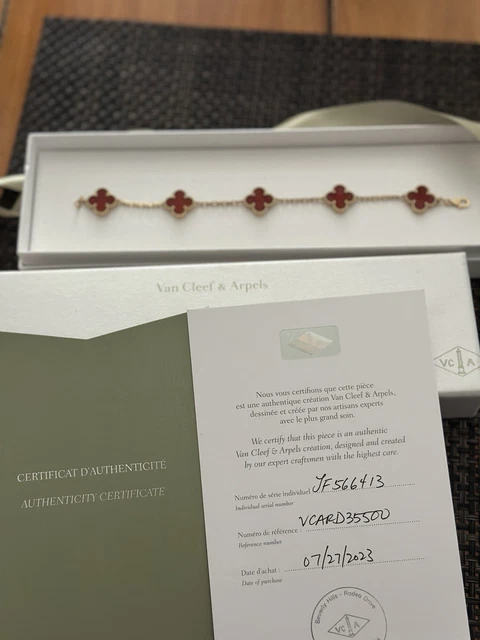 Van Cleef & Arpels : Bracelet Alhambra Vintage en or jaune 18 carats et cornaline à 5 motifs