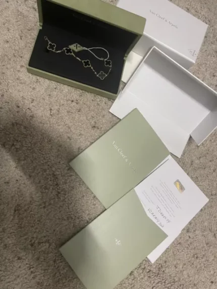 Accessoires : Pendentif, boîte en daim vert, boîte extérieure blanche, certificat, reçu original