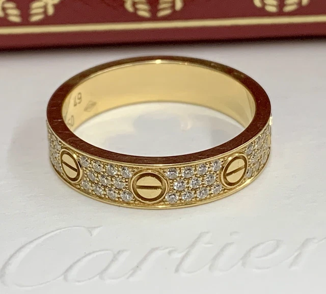 Bague Love classique Cartier avec 3 diamants en or jaune, taille 58