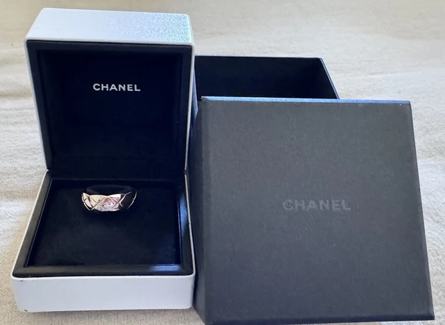 Bague Chanel Coco Crush à motif matelassé en or beige/rose 18 carats, presque neuve.