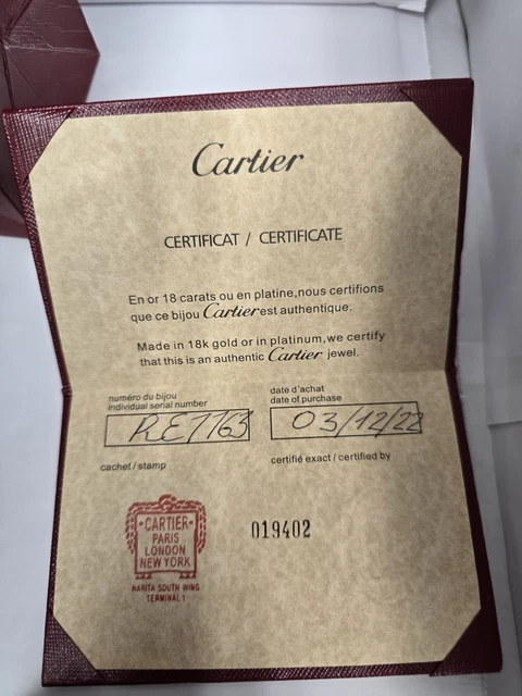 Cartier Certificat/documents Cartier (si disponibles – facultatif selon votre cas)