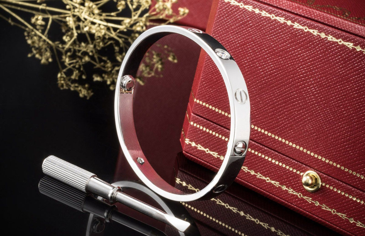 Bracelet jonc Cartier Love avec diamants, or blanc, taille 17
