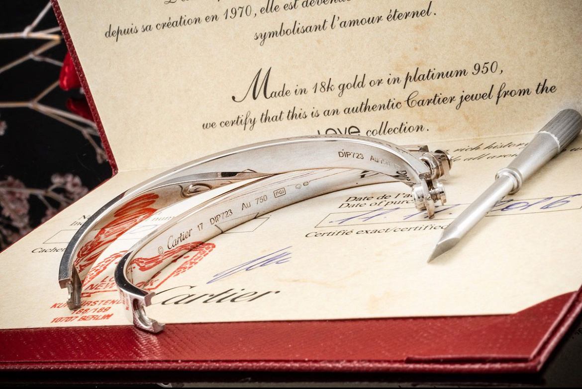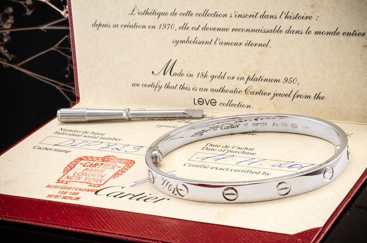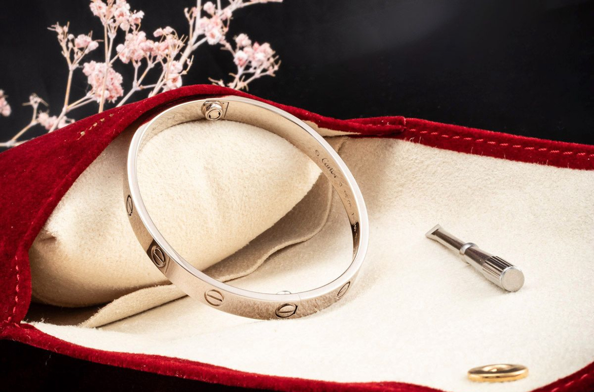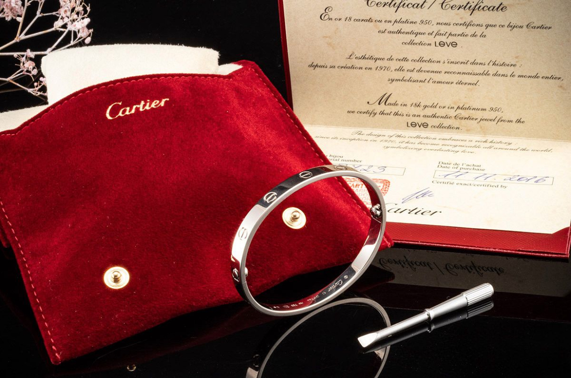Le classique et l’un des bijoux Cartier les plus demandés, le bracelet Cartier de la collection LOVE.