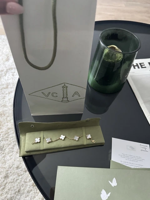 Bracelet Van Cleef & Arpels Alhambra vintage en nacre, 5 motifs, 19 cm. État neuf avec étiquettes. Expédié par USPS Ground Advantage.