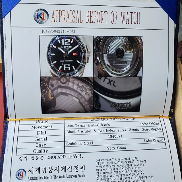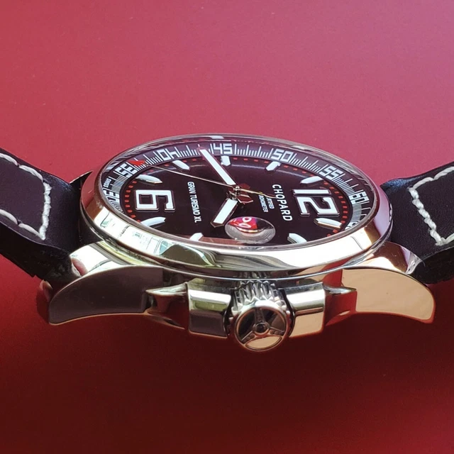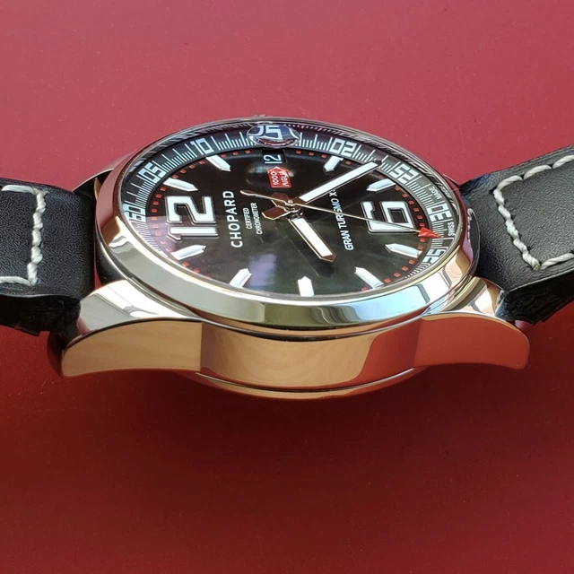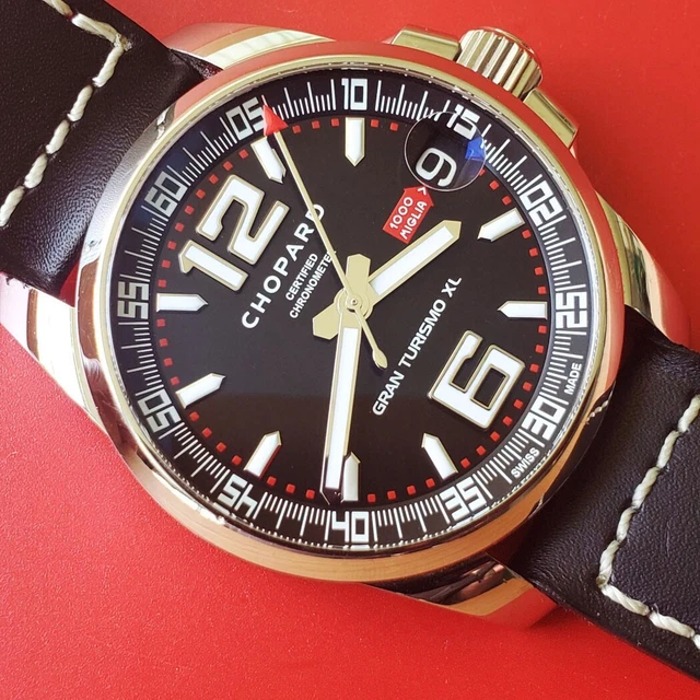 - État : PARFAIT, CHOPARD HOMME, MILLE MIGLIA, GRAN TURISMO XL, BOÎTIER 44 MM, MOUVEMENT AUTOMATIQUE RÉVISÉ, RÉF. 8997, DATE À RÉGLAGE RAPIDE, BOÎTIER TRÈS PROPRE, SUPERBE CADRAN NOIR, COURONNE VISSÉE, AUCUNE BOSSE/RAYURE/DÉGRADATION, BRACELET EN CUIR VÉRITABLE GÉNÉRIQUE, FONCTIONNE BIEN ET GARDE L’HEURE, LIVRÉ AVEC UNE ÉVALUATION D’AUTHENTICITÉ