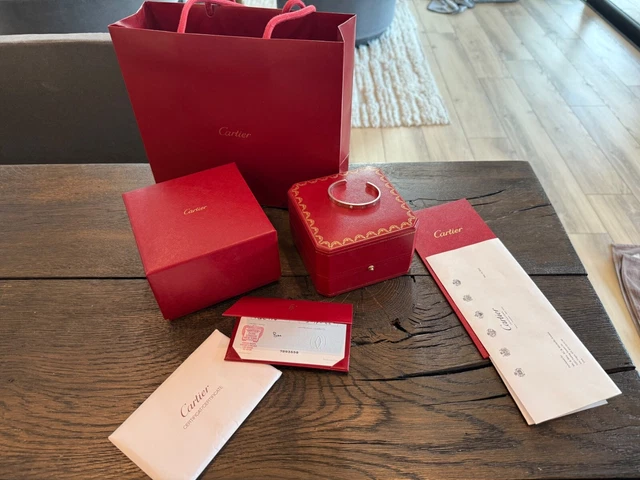 Manchette Cartier Love, or blanc 18 carats avec diamant, taille 17