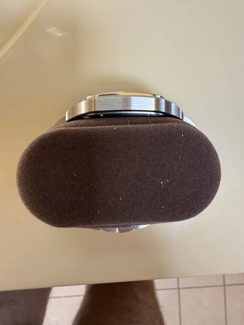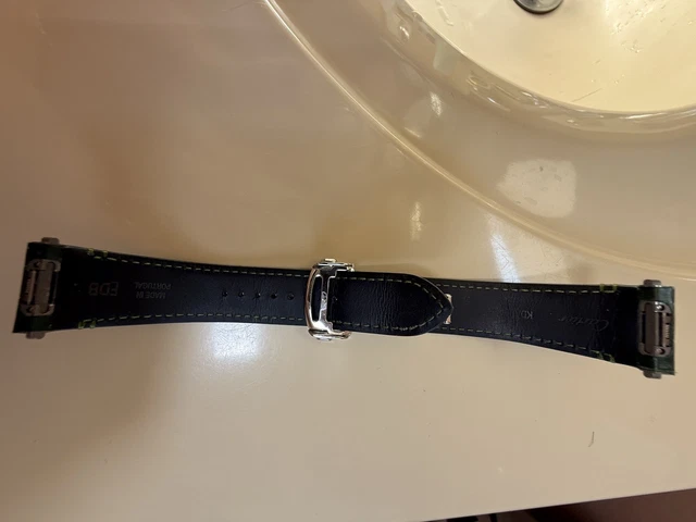 Comme neuf. Aucune rayure, tourbillon, bosse, etc. Portée une douzaine de fois. Conservée dans un écrin à l’abri de la poussière. Ensemble complet. Bracelet en cuir supplémentaire, interchangeable à la main. Parfait état.