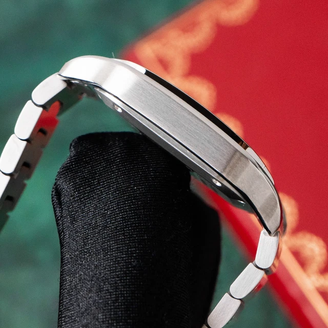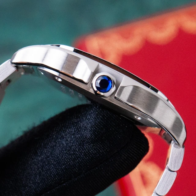 Nous sommes ravis de vous présenter cette exceptionnelle Cartier Santos Medium 2021 , dotée d’un cadran blanc saisissant à chiffres romains , contrastant avec une lunette en acier poli et d’élégantes aiguilles des heures et des secondes bleu foncé . Ce garde-temps est en excellent état et ne présente que de légères traces d’usure. Le boîtier, la lunette, le bracelet et le fermoir sont impeccables, tandis que le verre et le cadran sont impeccables . Une occasion en or de posséder une Cartier moderne et très recherchée, dans un état exceptionnel, proche du neuf.