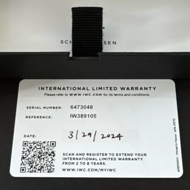 Outre ses fonctionnalités pratiques, cette montre arbore un design élégant aux allures de pilote/aviateur, sportive, luxueuse et décontractée. Elle est livrée avec sa boîte/emballage d’origine, son manuel/livret et ses papiers, et bénéficie d’une garantie fabricant prolongée jusqu’au 27/03/2032. Cette montre-bracelet IWC est le choix idéal pour tous ceux qui recherchent une montre de haute qualité alliant fonctionnalité et style.