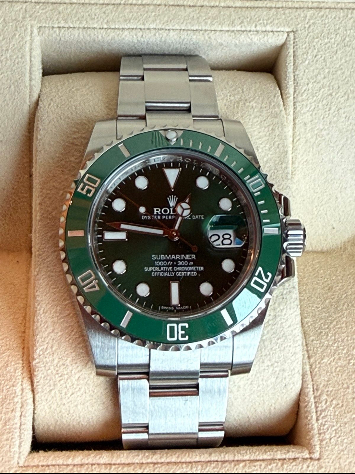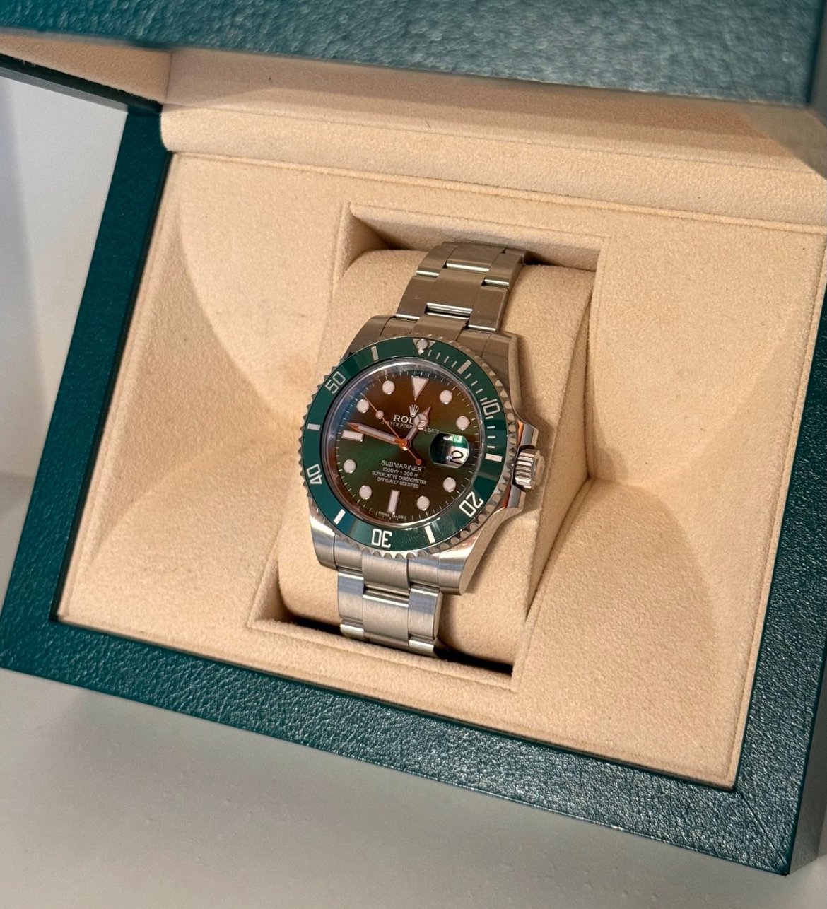 Rolex Submariner Date « Hulk » d’origine (Réf. 116610LV) avec cadran vert et lunette verte.