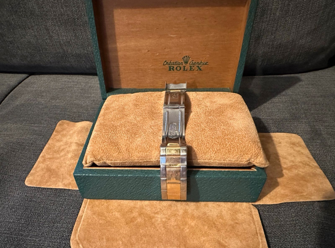 Rolex Submariner Date Ref. 16613, l’une des versions les plus recherchées de la légendaire montre de plongée – dans l’élégante combinaison bicolore en acier inoxydable et or jaune 18 carats avec l’aspect caractéristique. Cette variante est utilisée avec amour par les collectionneurs et est à la fois sportive et élégante – un véritable accroche-regard au poignet.