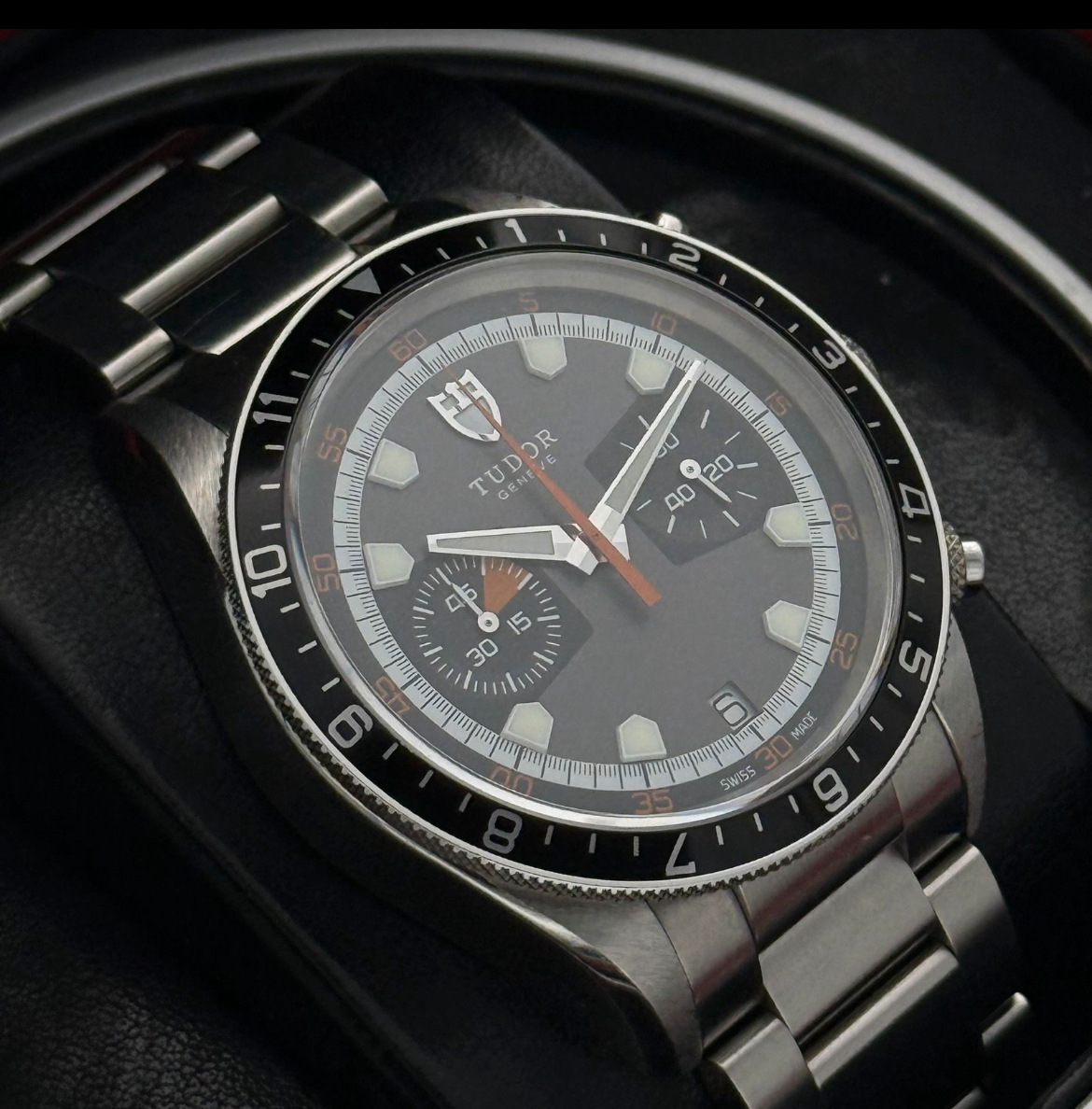 La Tudor Heritage Chrono automatique avec le numéro de référence : 70330N .Cette montre sportive et élégante a été fabriquée en 2012 et offre une précision maximale ainsi qu’un design distinctif qui réinterprète le charme des chronographes classiques.