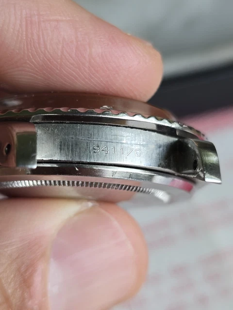 Tudor Submariner Snowflake référence 9411/0, vers 1976. La montre est en état de marche, se remonte, l’heure et la date sont réglées correctement. La couronne se visse et se dévisse correctement. Le verre acrylique présente des rayures. Le cadran et les aiguilles au tritium sont en excellent état. Tous les marquages, inscriptions et index sont présents et clairement visibles. Les aiguilles et le cadran conservent leur luminescent tritium d’origine. Le boîtier en acier inoxydable est en excellent état et semble non poli. Il a peut-être été poli à un moment donné. Le boîtier présente des rayures, comme on peut s’y attendre compte tenu de l’âge de la montre. Dans l’ensemble, la montre a été une valeur sûre et est en excellent état. La lunette tournante bidirectionnelle tourne correctement et est en excellent état. Le numéro de référence 9411/01 et le numéro de série 847xxx sont tous deux présents, nets et clairement visibles entre les cornes. Le numéro de série correspond aux documents et à la date de production de 1976. La montre est livrée avec son bracelet riveté C&I d’origine, daté de 1976. Le bracelet est en excellent état, sans aucune élasticité. Le bracelet peut s’adapter à un poignet jusqu’à 6 3/4″. La montre est livrée avec des boîtes intérieures et extérieures et tous les documents.
